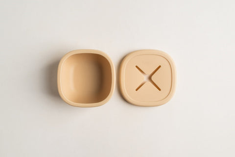Hegen Suction Bowl with Snack Lid Silicone Taupe (SGD $28)