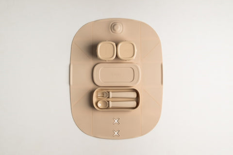 Hegen Mealtime Starter Kit with Foldable Placemat Taupe (SGD $105)