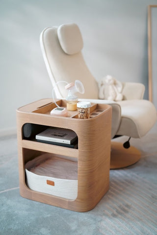 Designed with both style and functionality in mind, this side table is an ideal addition to your nursery, providing convenient storage and easy access to all your breastfeeding necessities. Best used next to the Hegen Recliner, you are free from the hassle of getting up and sitting down during nursing, pumping or latching sessions.